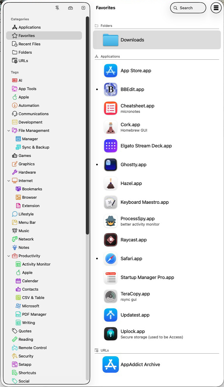 Tagging lets you create categories for apps without any friction. You can even nest them, likeUtilities/ScreenshotsorUtilities/Clipboard, which makes browsing a large app library much more manageable. -